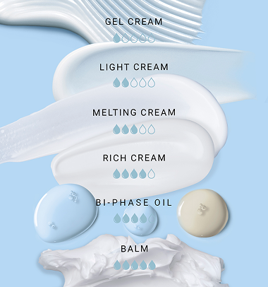 ✔ Choose from 6 textures, to meet your skin needs and preferences. Follow our hydration / nutrition gauge: 1 drop for the lightest, 5 for the richest.