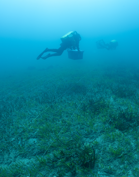 We współpracy z Andromède Océanologie uczestniczymy w ochronie łąk Posidonia oceanica – trawy morskiej rosnącej na dnie Morza Śródziemnego. To jeden z najważniejszych ekosystemów na Ziemi – Posidonia pochłania od 4 do 5 razy więcej dwutlenku węgla niż większość lądowych roślin morskich, wytwarza tlen i stanowi schronienie dla setek gatunków ryb oraz bezkręgowców. Jest też wyjątkowo wrażliwa na substancje chemiczne przedostające się do wody podczas kąpieli.
